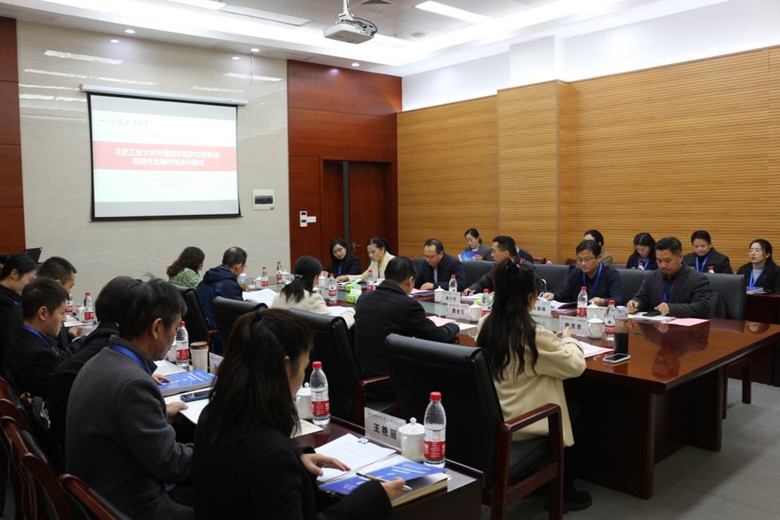 Xu Xiaohong, Deputy Director of the Graduate School's Academic Development Office at HFUT, relevant responsible persons from the School of Foreign Studies, directors of various departments (centers), backbone teachers of degree programs, and representatives of graduate students attended the meeting.